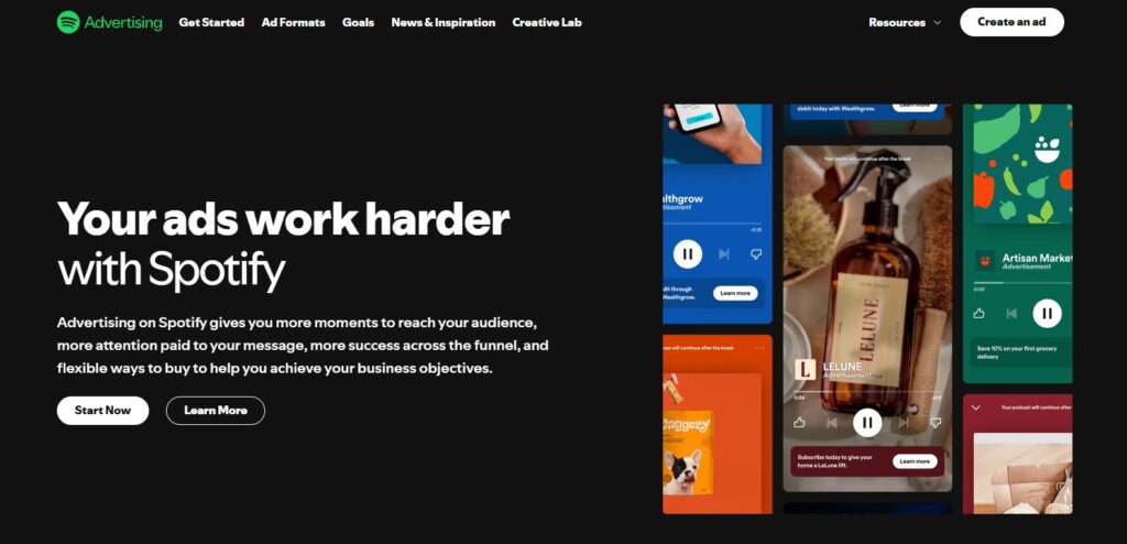 Spotify permite livrarea de anunturi audio intre piese, targetate pe interese muzicale, locatie, momentul zilei si chiar starea emotionala (ex: antrenament, relaxare, calatorie).